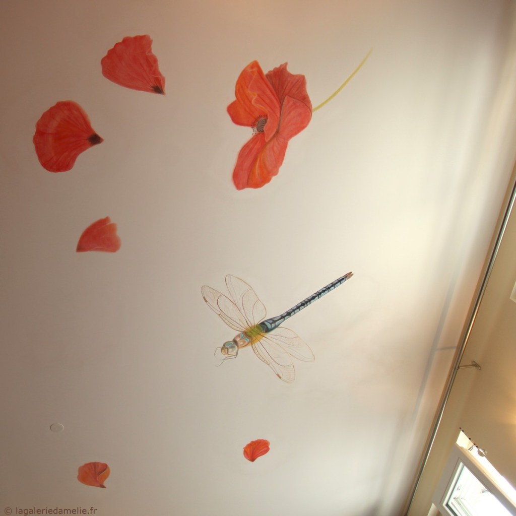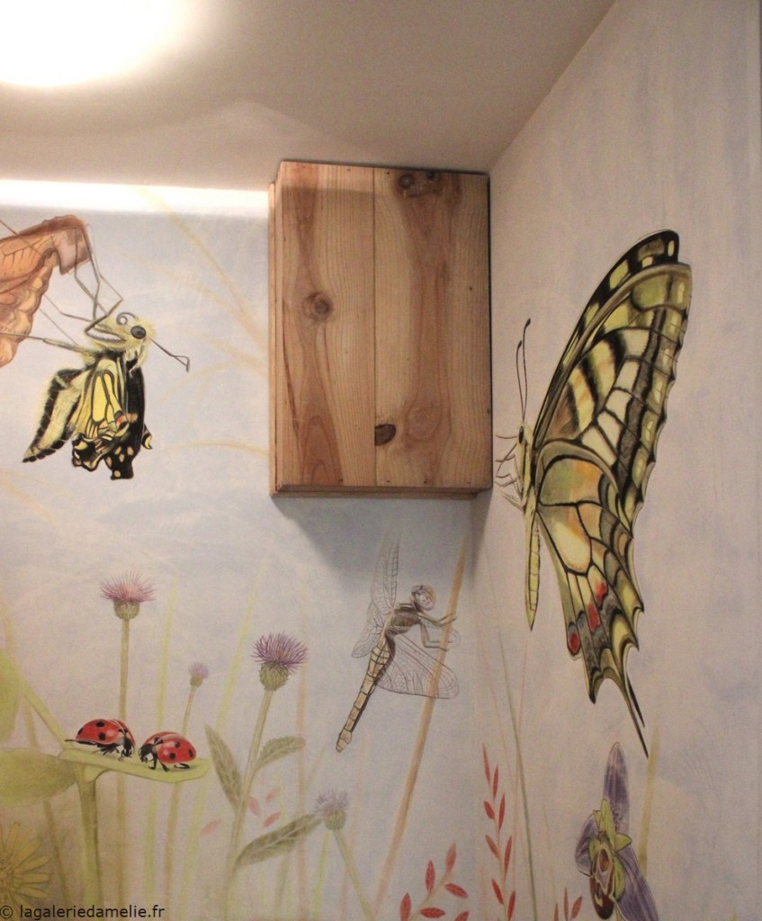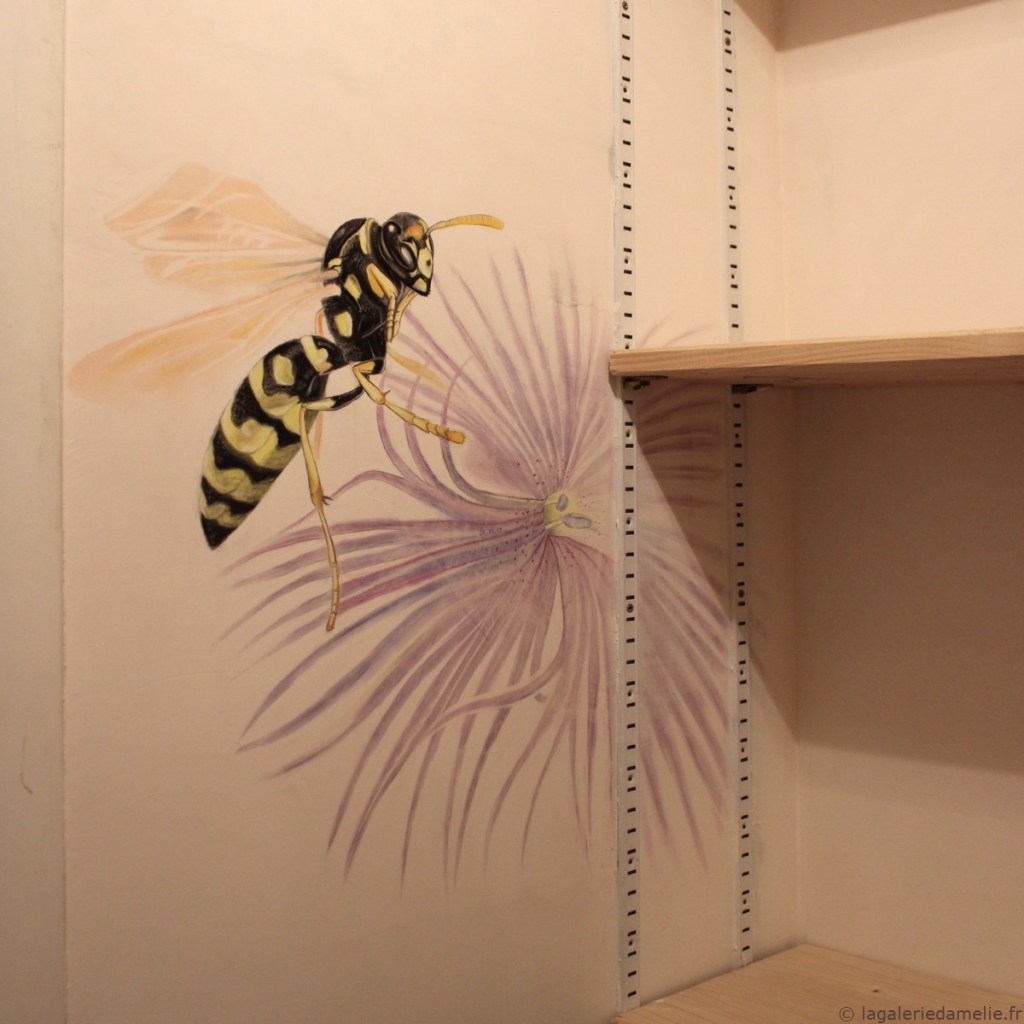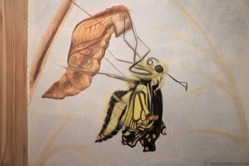Dessins muraux naturalistes réalisés au pastel chez un particulier.