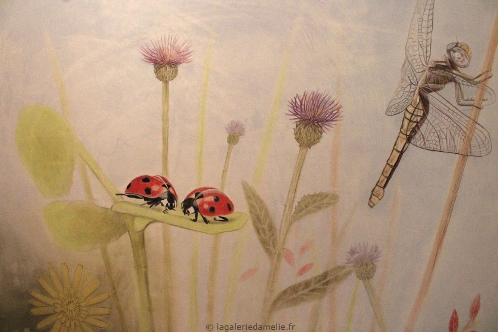 Libellule, coccinelles, papillons machaon, chrysalide, orchidées, chardons, trèfles…