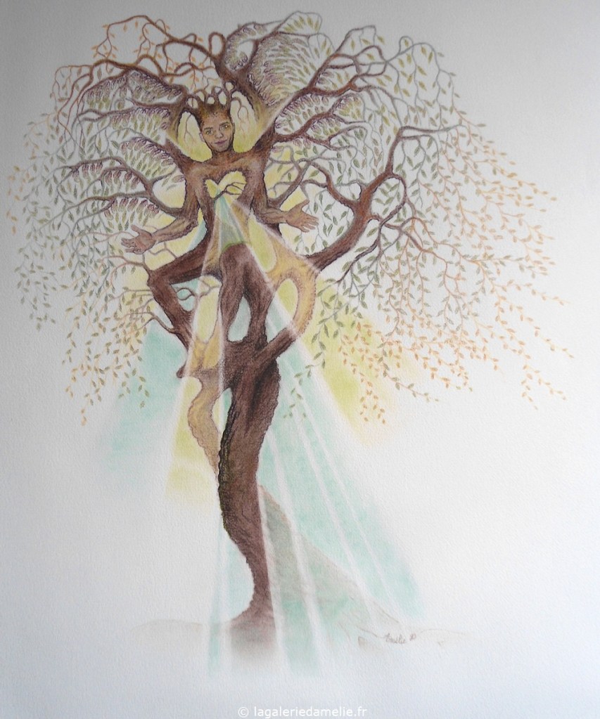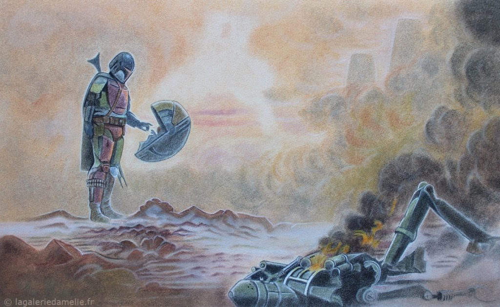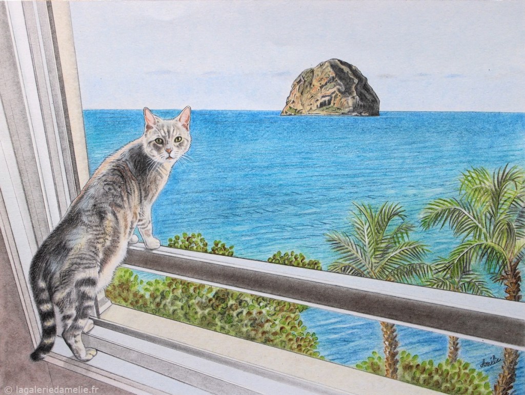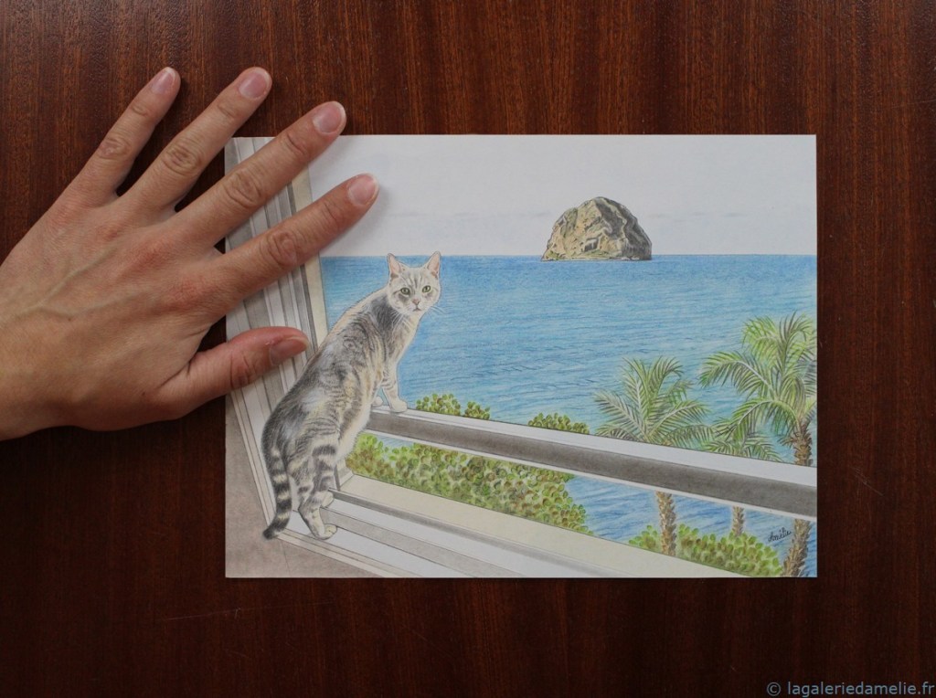 Crayon de couleur (Polychromos) pour les animaux, aquarelle pour le fond.