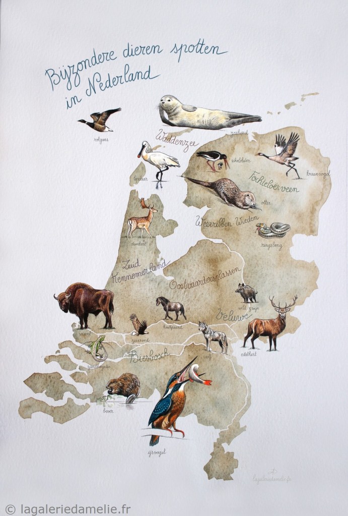 Détails d’une carte naturaliste des Pays-Bas à paraître dans Trailrunning Magazine ( https://trail-magazin.de/ – https://www.instagram.com/trailmagazin/ )