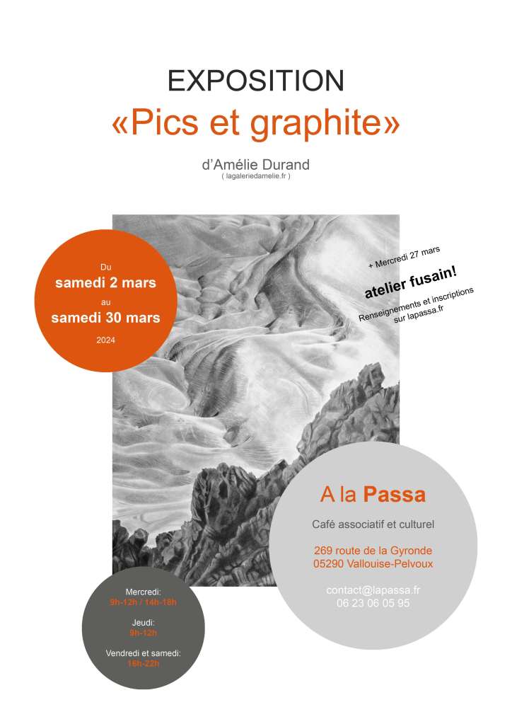 Exposition de la série « Pics et Graphite » du 7 juin au 7 juillet 2024 à l’hôtel St Roch de Puy St Vincent.