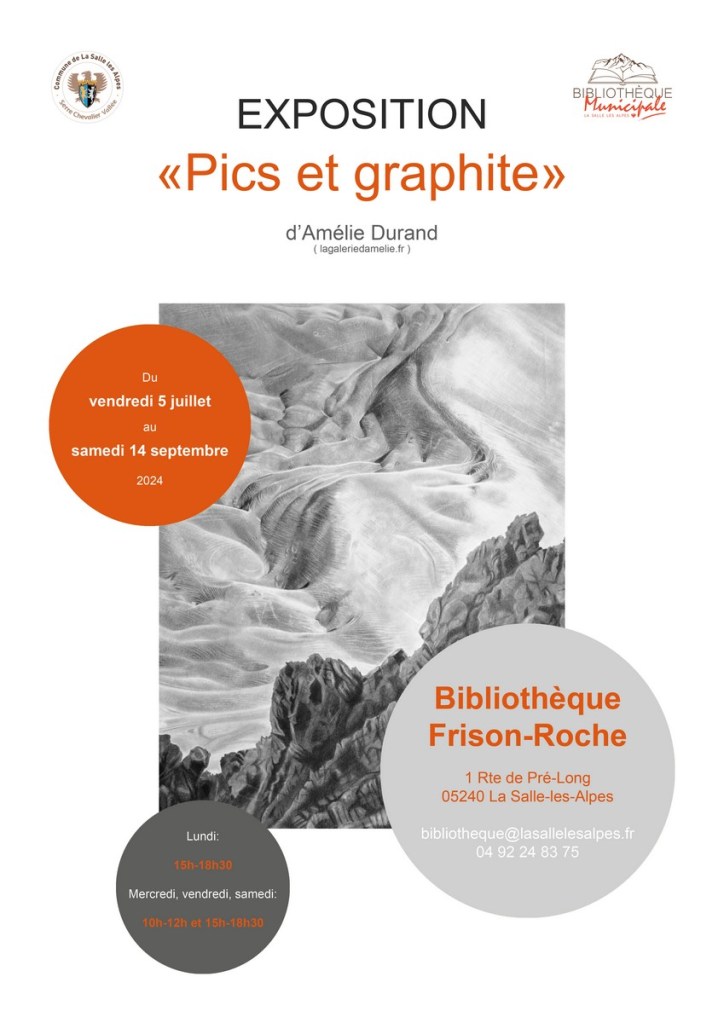 du 5 juillet au 14 septembre 2024 à la bibliothèque Frison-Roche Adresse: 1 route de Pré-long 05100 La Salle-les-Alpes.