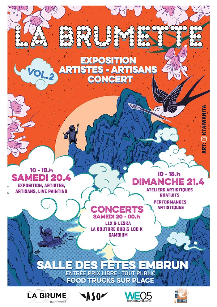 - Deux de mes tableaux sont exposés au Champ du Vagabond (7 Rue Prte Méane, 05100 Briançon): restaurant dont les spécialités se basent sur les cueillettes des cuistots, vivement recommandé 😉 !